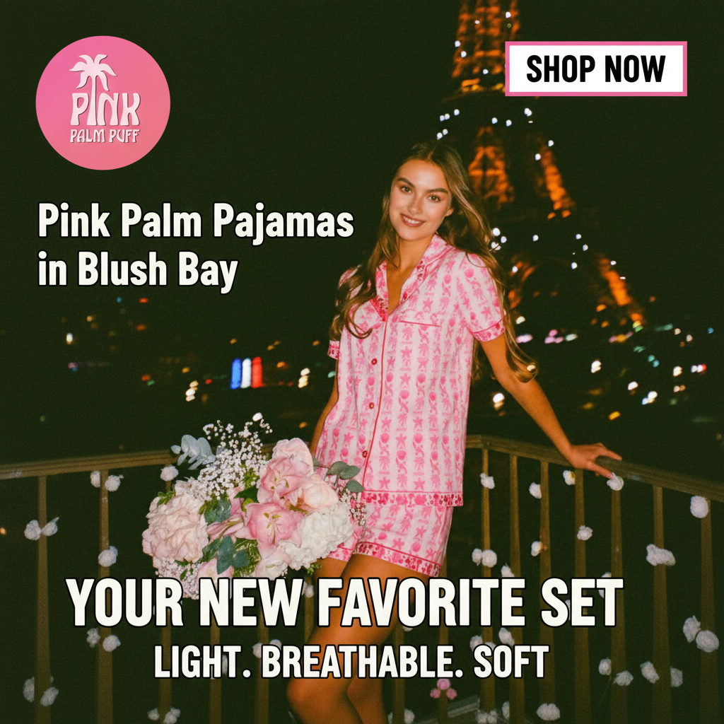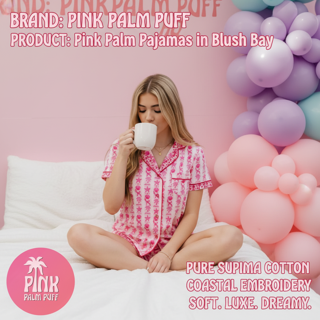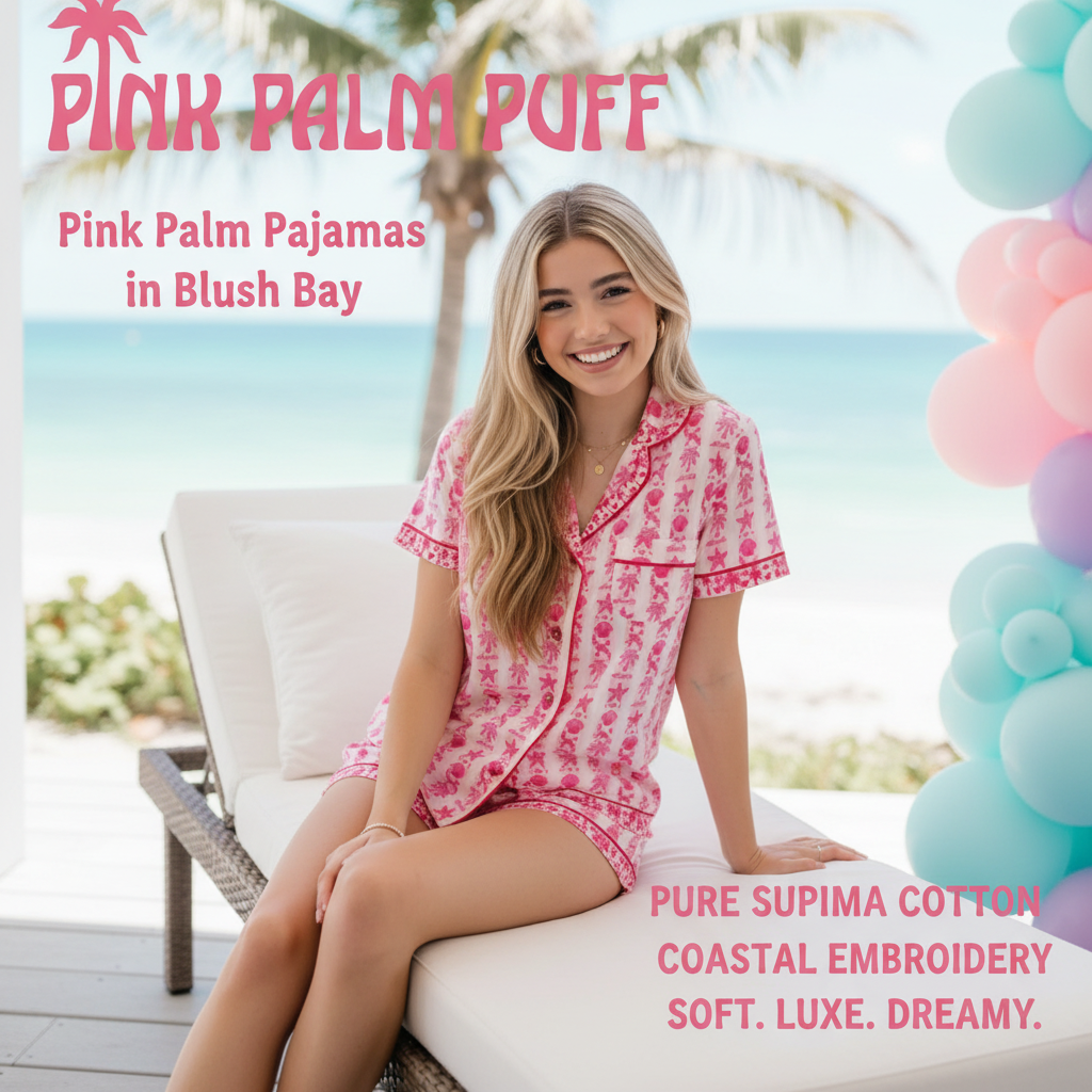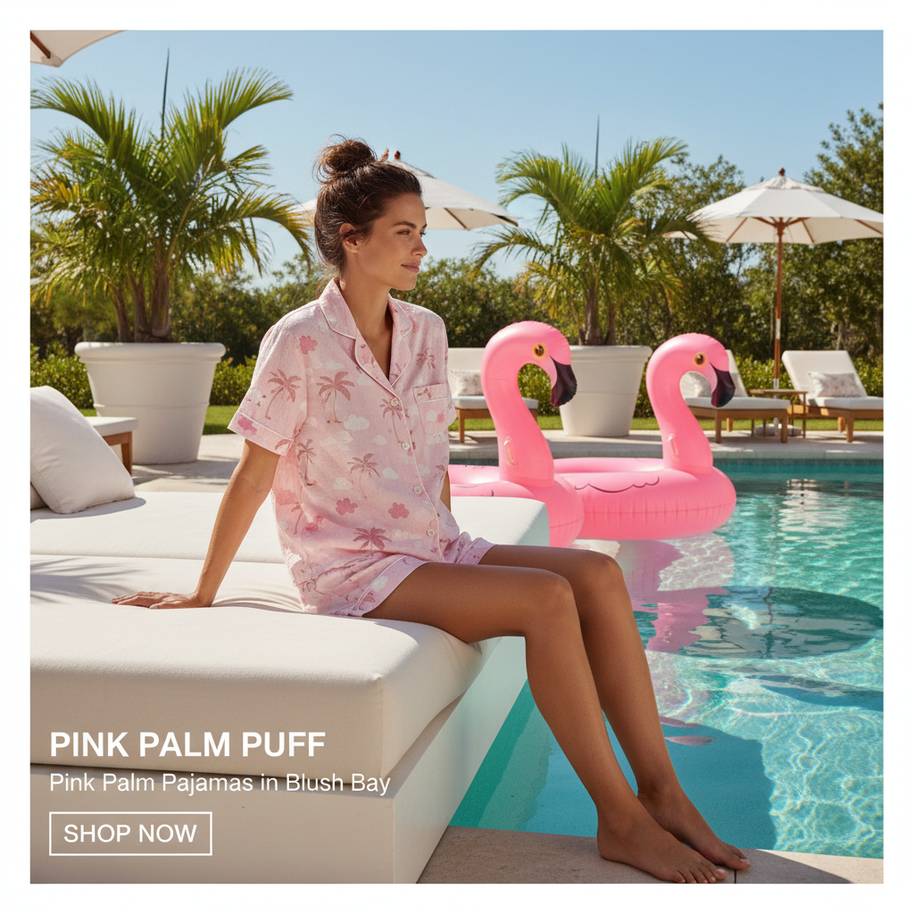The video, song & promo graphics were all 100% created from your shopify product photos and description of the product: Pink Palm Pajamas in Blush Bay.
